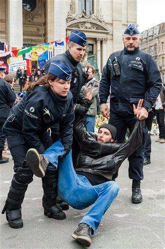Also Saturday, Belgian police, some on horseback, moved in to detain some two dozen protesters at Brussels' Bourse Square, breaking up a demonstration to protest Islamophobia. Authorities in the Belgian capital, fearing violent disorders, banned all demonstrations after a group of right-wing hooligans congregated at the same square last Sunday.