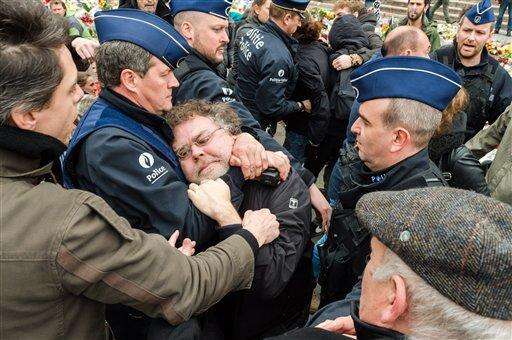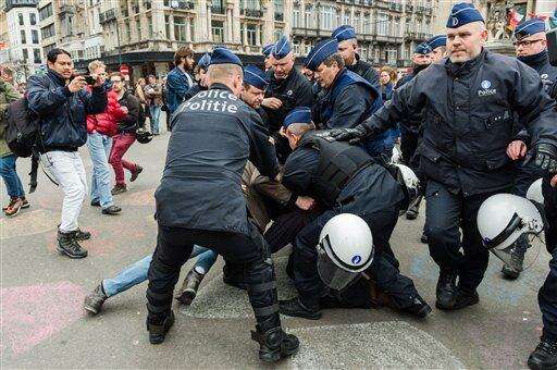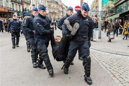 In the Molenbeek neighborhood, where a far-right France-based group had planned to demonstrate, at least one person was detained, and witnesses saw several minor clashes between police and young people.