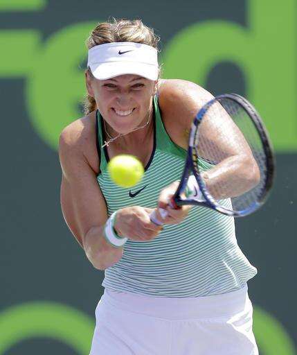 Azarenka, a two-time Grand Slam champion mounting a comeback from injuries, defeated top-ranked Serena Williams in the Indian Wells final two weeks ago. She's only the third woman to win both tournaments in the same year, and the first since Kim Clijsters in 2005.