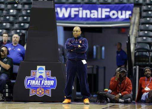Syracuse head coach Quentin Hillsman watches during college basketball practice for the women's Final Four in the NCAA Tournament Saturday, April 2, 2016, in Indianapolis. (AP Photo/Michael Conroy) The Associated Press