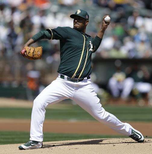 Oakland Athletics pitcher Felix Doubront works against the San Francisco Giants in the first inning of an exhibition baseball game Saturday, April 2, 2016, in Oakland, Calif. (AP Photo/Ben Margot) The Associated Press
