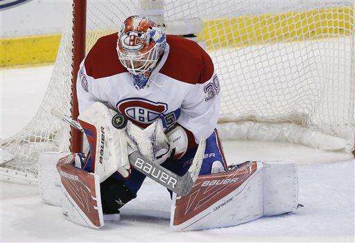 Montreal Canadiens goalie Mike Condon makes a save during the first period of an NHL hockey game against the Florida Panthers, Saturday, April 2, 2016, in Sunrise, Fla. (AP Photo/Wilfredo Lee) The Associated Press
