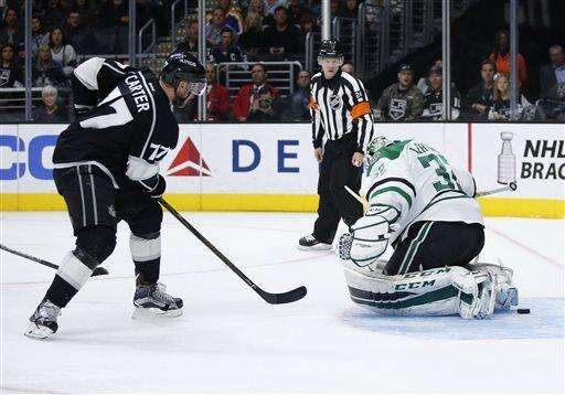 The Stars maintained a 2-to-1 shot advantage in the second period, but Carter put the Kings ahead again with his 23rd goal when the puck dribbled off his stick and crossed up Lehtonen.