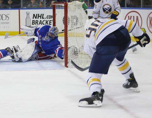 Zemgus Girgensons and Matt Moulson also scored on a night the Sabres sent Henrik Lundqvist to the bench in less than 21 minutes and had the sellout crowd at Madison Square Garden booing several times.