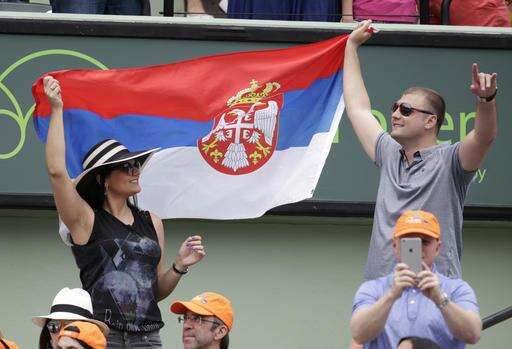 Fans wave a Serbian flag during the men's singles final match between Novak Djokovic and Kei Nishikori at the Miami Open tennis tournament, Sunday, April 3, 2016, in Key Biscayne, Fla. Djokovic won 6-3, 6-3. (AP Photo/Lynne Sladky) The Associated Press