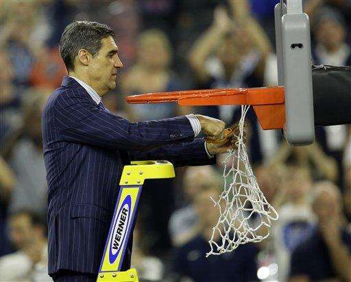 Villanova head coach Jay Wright cuts down the net after the NCAA Final Four tournament college basketball championship game against North Carolina, Monday, April 4, 2016, in Houston. Villanova won 77-74. (AP Photo/Charlie Neibergall) The Associated Press