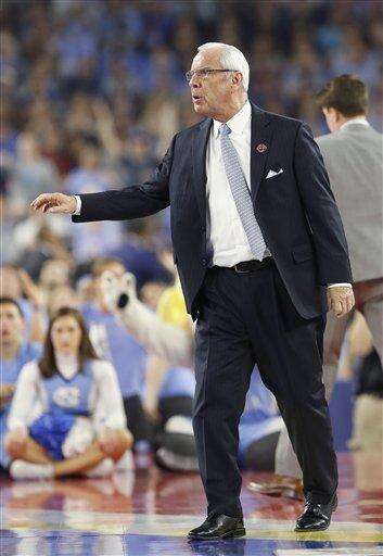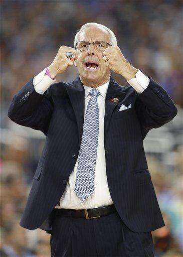 North Carolina head coach Roy Williams speaks during the first half of the NCAA Final Four tournament college basketball championship game against Villanova, Monday, April 4, 2016, in Houston. (AP Photo/David J. Phillip) The Associated Press