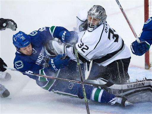 The Canucks led 3-2 after two periods, and the Kings pushed hard in the third, including a scramble near the midway point where Miller had to pounce on a loose puck that rattled off the glass and tumbled in front.