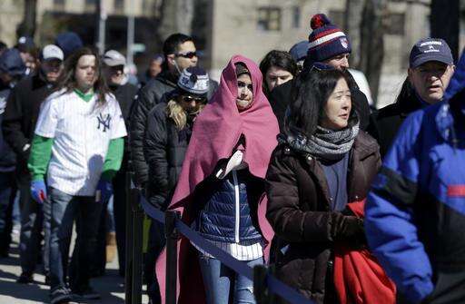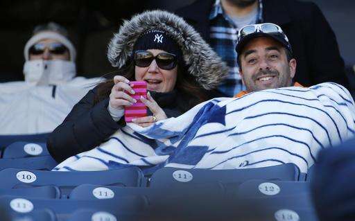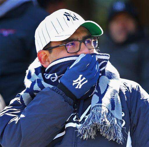 It was 27 degrees when batting practice began, and the temperature rose to 36 with a stiff wind and a cloudless sky at game time. The crowd seemed slightly more than half the announced attendance of 47,280 - the smallest for a Yankees home opener since 2003. This also was the lowest temperature for any regular-season Yankees game in the Bronx since that 2003 home opener.