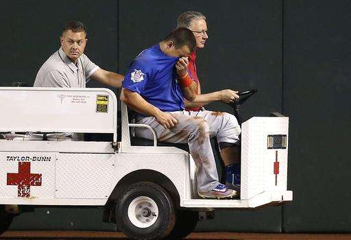 With two outs in the second, Segura hit one to deep left-center, Schwarber converging on it on the run from left field and Fowler from center. They came together on the warning track, in front of the 413-foot sign, their legs tangled as the ball rolled away. Schwarber, the fourth overall pick in the 2014 draft and Chicago's backup catcher, stayed on the ground for several minutes before being helped to his feet and taken from the field in a cart.