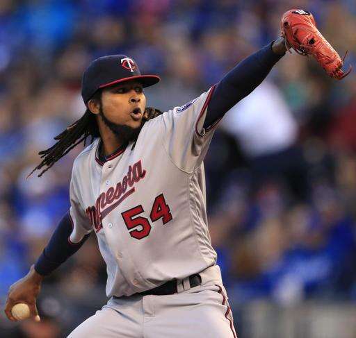 Minnesota Twins starting pitcher Ervin Santana delivers to a Kansas City Royals batter during the first inning of a baseball game at Kauffman Stadium in Kansas City, Mo., Friday, April 8, 2016. (AP Photo/Orlin Wagner) The Associated Press