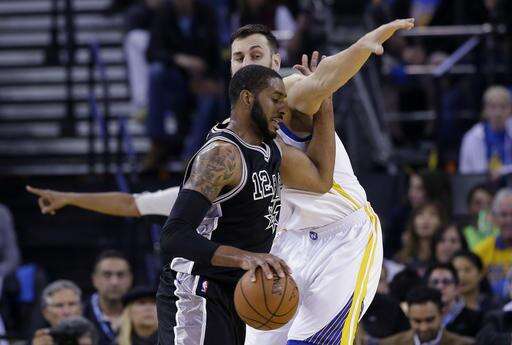 Spurs forward LaMarcus Aldridge left the game late in the first quarter with a dislocated right pinky finger. Trainers taped it to his ring finger and he returned in the second quarter.