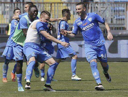 Earlier, Fiorentina lost 2-0 at Empoli to damage its hopes of qualifying for the Champions League. It is seven points behind third-place Roma, which hosts Bologna on Monday. Six rounds remain.
