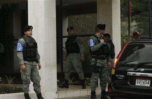 Police officers stand outside Mossack Fonseca law firm while Organized crime prosecutors raid the offices, in Panama City, Tuesday, April 12, 2016. Organized crime prosecutors raided the offices of the Mossack Fonseca law firm Tuesday looking for evidence of money laundering and financing terrorism following a leak of documents about tax havens it set up for wealthy international clients. (AP Photo/Arnulfo Franco) The Associated Press