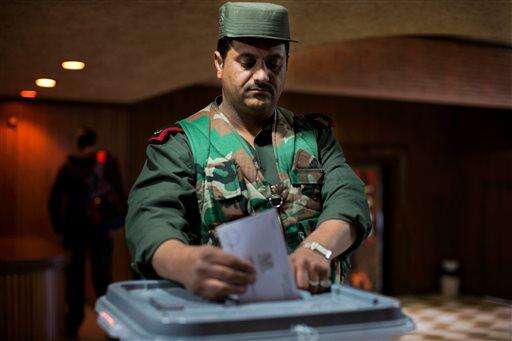 Polling stations have been set up in 12 of Syria's 14 provinces, excluding the northern province of Raqqa, controlled by the Islamic State group, and the northwestern province of Idlib, controlled by the al-Qaida-affiliated Nusra Front and other insurgent groups.