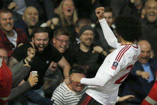 Midfielder Marouane Fellaini doubled the lead in the 67th minute from close range, before Tomkins gave the home side hope with a header in the 79th.
