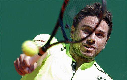 Stanislas Wawrinka of Switzerland plays a return to France's Gilles Simon during their match of the Monte Carlo Tennis Masters tournament in Monaco, Thursday, April 14, 2016. (AP Photo/Lionel Cironneau) The Associated Press