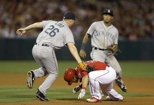 Angels: Kole Calhoun has no RBIs and just four hits in 36 career at-bats against Hernandez. But he drove in the Angels' final run with an eighth-inning single against Vidal Nuno. ... The switch-hitting Pennington was the first second baseman to homer against Hernandez since Ian Kinsler did it with Texas on July 3, 2013. Fifteen of his 31 career homers have been solo shots. ... Albert Pujols was 0 for 4 and is hitless in 27 at-bats since his two-run homer on April 17 at Minnesota.