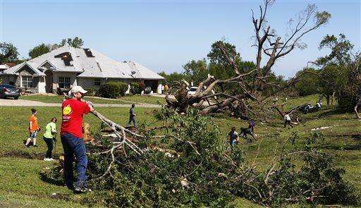 A day earlier, hail as big as grapefruit fell in northern Kansas, while winds approaching hurricane force raked communities from Nebraska and Missouri to Texas.