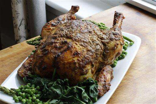 The chicken is made tender with a marinade of yogurt and lemon juice, then enlivened with earthy cumin, garam masala, ginger and garlic. Once the ingredients have been blended into a paste, all that's needed is a quick rub down and rest (the chicken, not you) before it goes into the oven, leaving you free and out of the kitchen.
