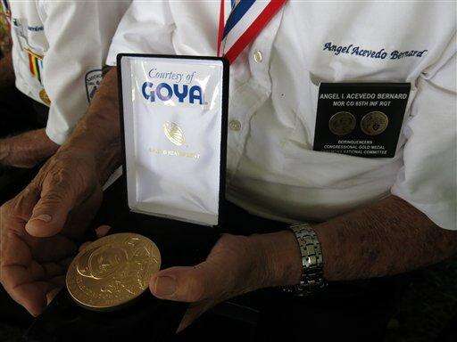 SAN JUAN, Puerto Rico (AP) - Angel Acevedo looked down at the Congressional Gold Medal in his hands as his eyes welled with tears during a ceremony held Wednesday to honor Puerto Ricans like him who faced discrimination and waited decades to be recognized for fighting several wars under the last segregated unit in combat.