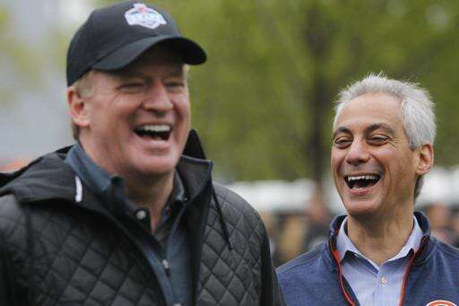Goodell joined Chicago Mayor Rahm Emanuel and some of the NFL's top prospects for a football clinic for a group of kids in Grant Park on the eve of the NFL draft. The first round begins Thursday night at a downtown theater, but Goodell was quiet when asked about where it might be held in 2017.