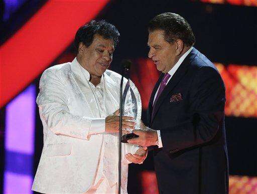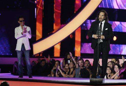 Singer Marco Antonio Solis receives the Lifetime Achievement Award, during the Latin Billboard Awards, Thursday, April 28, 2016 in Coral Gables, Fla. (AP Photo/Wilfredo Lee)