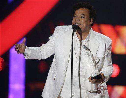 Singer Juan Gabriel receives the Star Award at the Latin Billboard Awards, Thursday, April 28, 2016 in Coral Gables, Fla. (AP Photo/Wilfredo Lee)