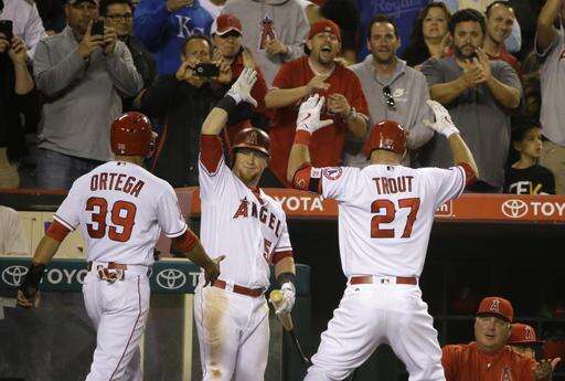 Angels: Nine of Trout's 37 career hits against Kansas City have been home runs. ... The Angels have produced no more than four runs in 17 of the team's first 21 games. ... Tropeano picked off Dyson at first base with runners at the corners to end the fourth. The right-hander did the same thing to Seattle's Nori Aoki in the second inning of his previous start to end the second inning.