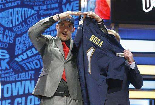 SAN DIEGO (AP) - Joey Bosa says he's "a chill guy," so it's perfect that he was drafted by the San Diego Chargers with the third pick overall in the NFL draft Thursday night.