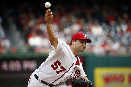 Washington Nationals starting pitcher Tanner Roark throws during the third inning of an interleague baseball game against the Minnesota Twins at Nationals Park, Saturday, April 23, 2016, in Washington. (AP Photo/Alex Brandon) The Associated Press