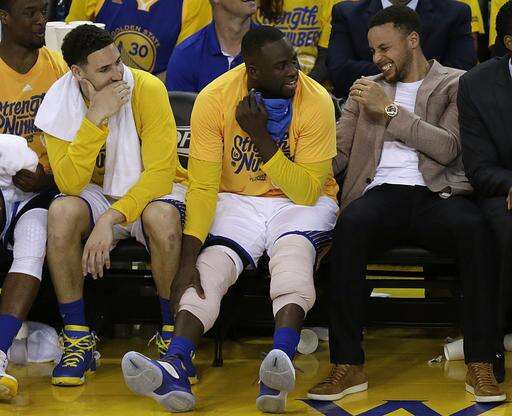 Golden State advanced as Curry cheered, celebrated and encouraged from the bench. He even worked the officials.