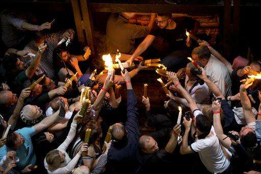 In a ritual dating back at least 1,200 years, they crowded Saturday into the Church of the Holy Sepulchre, where Christian tradition holds that Jesus was crucified, buried and resurrected.