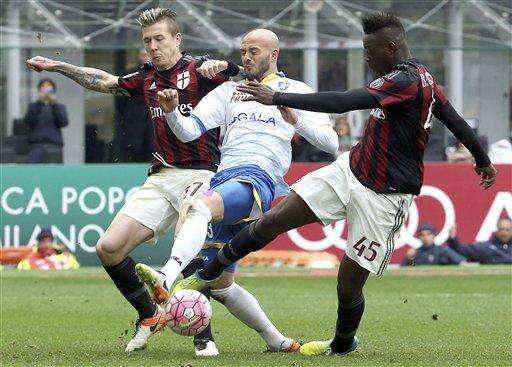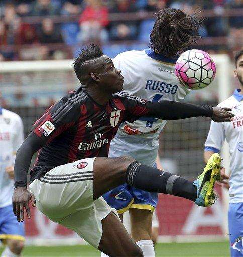 Milan should have got back into the match straight after the break but Frosinone stand-in goalkeeper Francesco Bardi saved Balotelli's penalty following Adriano Russo's handball.