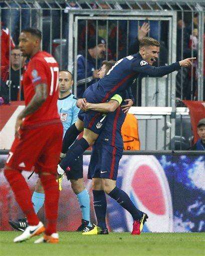 MUNICH (AP) - A goal from Antoine Griezmann sent Atletico Madrid to the Champions League final for the second time in three seasons despite a 2-1 defeat at Bayern Munich on Tuesday.