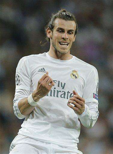 Real Madrid's Gareth Bale reacts during the Champions League semifinal second leg soccer match between Real Madrid and Manchester City at the Santiago Bernabeu stadium in Madrid, Wednesday May 4, 2016. (AP Photo/Paul White)