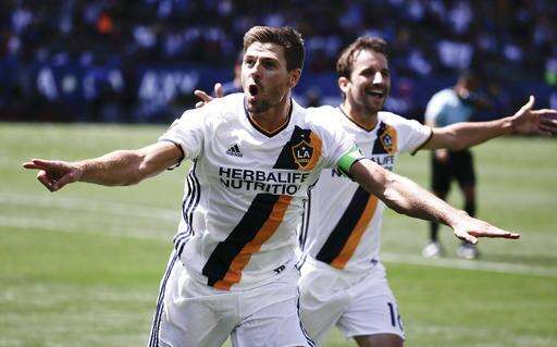 LA led 3-0 at the break after Mexican Giovani dos Santos blasted a volley into the back of the net from the edge of the box but came under intense pressure in the second half when Kelyn Rowe and Juan Agudelo scored three minutes apart. But the Galaxy made sure of the three points when Gerrard scored in stoppage time.