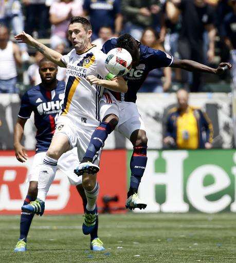 Los Angeles Galaxy forward Robbie Keane, left, battles New England Revolution forward Juan Agudelo for the ball during the first half of an MLS soccer game on Sunday, May 8, 2016, in Carson, Calif. (AP Photo/Chris Carlson) The Associated Press