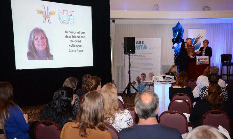 Kate Couston of Schaumburg is introduced Tuesday at the Daily Herald Fittest Loser finale.