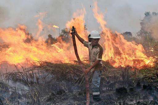 FILE - In this Sept. 12, 2015 file photo, a fireman works to contain a wildfire on a field in Ogan Ilir, South Sumatra, Indonesia. A dry and blistering hot northern Alberta is burning and doing so unusually early in the year, but that’s only the latest of many gargantuan fires on an Earth that’s grown hotter with more extreme weather. (AP Photo, File) The Associated Press