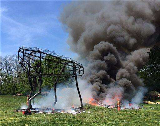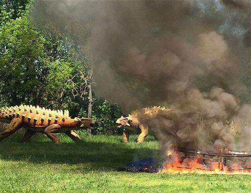 Exhibit creator Guy Gsell tells The Record newspaper (http://bit.ly/1T90hJZ ) the animatronic Argentinosaurus dinosaur was reduced to a charred skeleton Thursday at Overpeck County Park in Leonia.