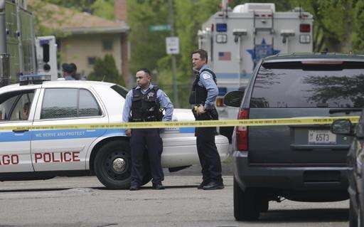 Police cordon off an area where a possible murder suspect has fired shots at officers surrounding a South Side home where he is barricaded Thursday, May 12, 2016, in Chicago. Police spokesman Anthony Guglielmi says officers returned fire but it was unclear if the man was hit. No officers were hurt. (AP Photo/M. Spencer Green) The Associated Press