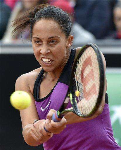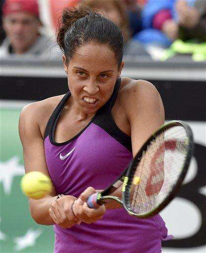 Madison Keys, of the United States, returns the ball to Garbine Muguruza, of Spain, during their semifinal match at the Italian Open tennis tournament, in Rome, Saturday, May 14, 2016. (Ettore Ferrari/ANSA via AP) The Associated Press
