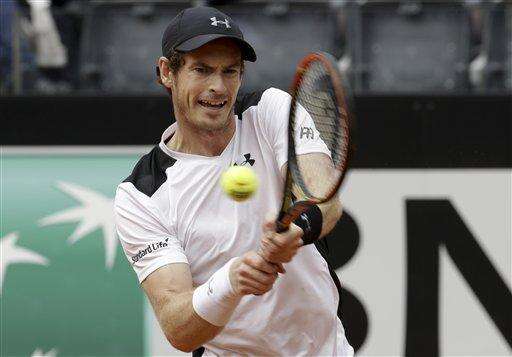 Andy Murray returns the ball to Lucas Pouille during their semifinal match at the Italian Open tennis tournament, in Rome, Saturday, May 14, 2016. (AP Photo/Alessandra Tarantino) The Associated Press