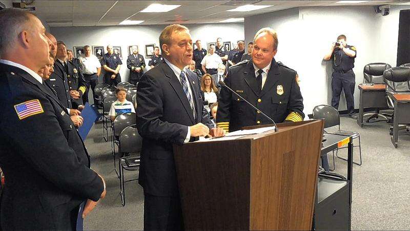 Dr. Mark Cichon, of Loyola University, speaks Monday during an award presentation to the Lake Zurich Fire Department for going above call of duty to help a 6-year-old girl. Bob Susnjara/bsusnjara@dailyherald.com