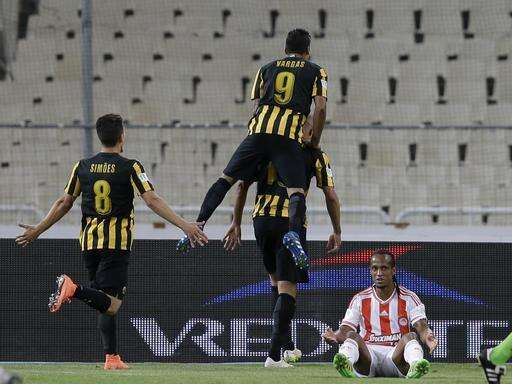 AEK kept the Greek league champion in check, and Vargas picked out Pantalos Mantalos for a header in the 39th minute. Six minutes into the second half, he led a counterattack that saw Rafik Djebour fire past goalkeeper Roberto.