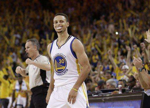 Golden State Warriors guard Stephen Curry (30) smiles after scoring against the Oklahoma City Thunder during the second half of Game 2 of the NBA basketball Western Conference finals in Oakland, Calif., Wednesday, May 18, 2016. The Warriors won 118-91. (AP Photo/Marcio Jose Sanchez) The Associated Press