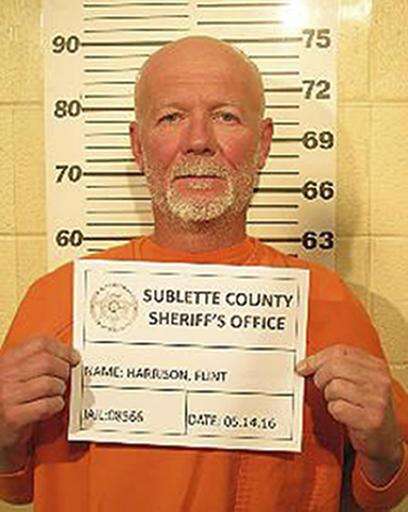 This May 14, 2016, photo provided by the Sublette County Sheriff's Office shows Flint Wayne Harrison. Officers culminated a manhunt late Saturday night with the arrest of Dereck James "DJ" Harrison, 22, several hours after the surrender of his father, Flint Wayne Harrison, 51, the Sublette County Sheriff's Office said. A woman and her four teenage daughters who were lured to a Utah house and tied up in the basement were thrilled and relieved to learn the father and son charged in the bizarre attack were in custody in Wyoming, authorities said Sunday. (Sublette County Sheriff's Office via AP) MANDATORY CREDIT The Associated Press