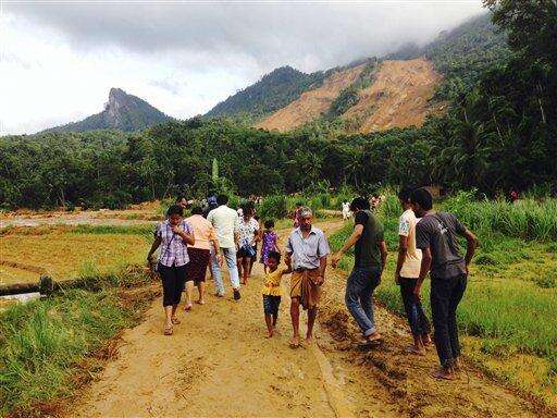 Villagers said torrents of muddy water, tree branches and debris came crashing down around their homes Tuesday in the three villages, located at different heights on the same hill in Kegalle District, about 72 kilometers (45 miles) north of Colombo.