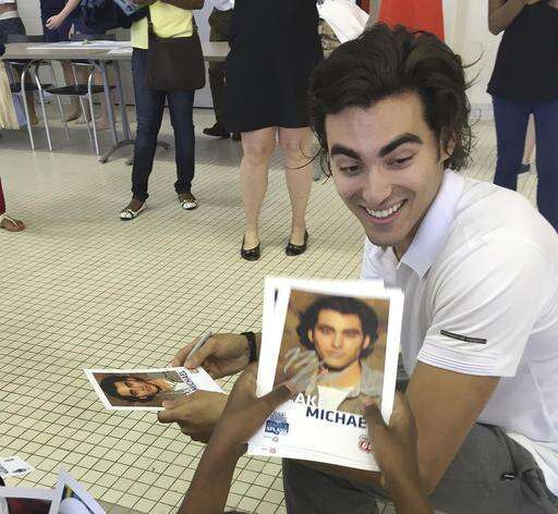 In this photo taken Friday, April 29, 2016, Disney Channel star Blake Michael signs autographs after taking part in a "Make A Splash" swimming clinic at the Georgia Tech aquatic center in Atlanta. USA Swimming hopes celebrities will help spread the message that all kids need to learn how to swim.. (AP photo/Paul Newberry) The Associated Press
